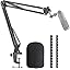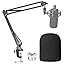 Audio-Technica AT2020 Mic Boom Arm with Foam Windscreen, Suspension Boom Scissor Arm Stand with Pop Filter Cover for Audio-Technica AT2020 Microphone by SUNMON