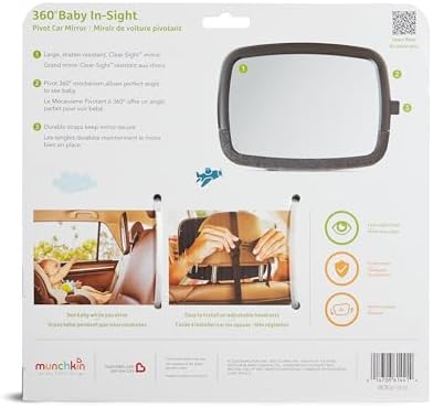 Cuando vas en camino con tu preciado cargamento, nada supera echar un vistazo al espejo retrovisor y ver la dulce cara de tu bebé. Con los pequeños en asientos orientados hacia atrás, el espejo del asiento trasero adecuado proporciona mayor tranquilidad mientras conduces. ¡El espejo Brica 360 Pivoting Baby In-Sight te permite ver a tu bebé orientado hacia atrás con facilidad! Su mecanismo de pivote de 360 grados te permite encontrar el ángulo perfecto, mientras que el tamaño extra grande proporciona una vista superior y sin distorsiones. Con correas resistentes de material de cinturón de seguridad, este espejo de coche es lo más seguro posible, además de combinar con el interior de tu coche. También es resistente a roturas y probado en accidentes, asegurando el viaje más seguro posible. ¡Es hora de salir al camino con la vista más dulce!