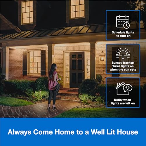 Ensure your family always enter a well-lit home with this Smart Home Switch & Connected Lighting Kit. Use the Lutron switch to set your front porch lights to turn on at dusk, ensuring your home is not dark when you return. Schedule your outdoor lights to turn on every night as the sun sets, even when the seasons change. The geofencing feature allows you to set your lights to turn off the minute you leave your home, providing you never forget. Caseta allows you to control your lights your way—use the free app, your voice (voice assistant and Caseta Smart Hub required), the wireless Pico remote, or the switch at the wall. The smart switch also controls multiple styles of bulbs at once—control your deck and patio lights all at once to transform your outdoor living space. Use your smart switch with a wireless Pico remote (sold separately) to control your lights from anywhere in your home. Add extra control by mounting a Pico to virtually any surface with a Pico wall mount bracket (sold separately), no cutting holes or pulling wire required.