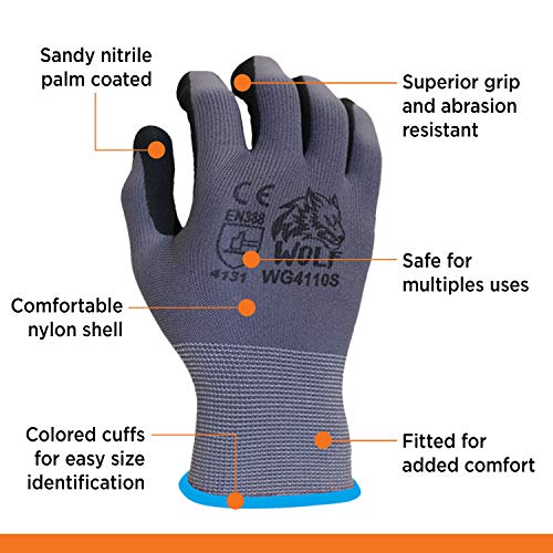 WOLF 13-gauge Ultra-Thin Nitrile Foam Coated Palm Grip Glove Multi-Purpose (24, Medium)