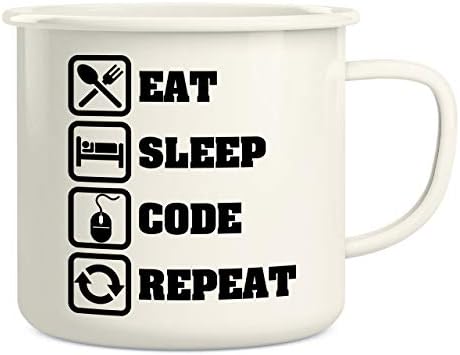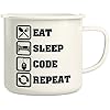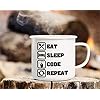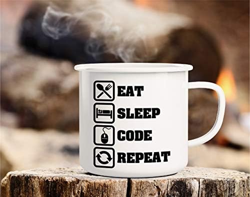Retreez Eat Sleep Code Repeat Programmer Software Engineer 16 Oz Enamel Stainless Steel Metal Camping Campfire Coffee Mug Cup - Funny, Sarcastic, Inspirational birthday gifts for friends, coworkers