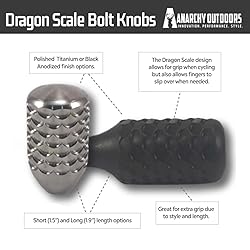 - Dragon Scale Bolt Knobs Put some added menace and functionality on your handle setup with one of our stylized Dragon Scale knobs. As sleek and menacing as its namesake, our replacement bolt knobs are ready to rock with any 5/16x24 threaded bolt.Features & BenefitsHighest qualityLightweight & Durabledurable5/16 x 24 thread1.50" short length1.90" long lengthAt Anarchy Outdoors, we pride ourselves in our ability to deliver high-quality, precision, and cutting-edge gear for firearm enthusiasts. All Anarchy Outdoors’ developed products come with a lifetime replacement guarantee.