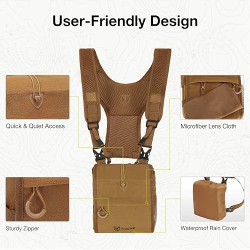 TIDEWE Bino Harness with Rangefinder Pouch & Rain Cover, Long-lasting Lightweight Portable Binocular Pack for Hunting, Hiking