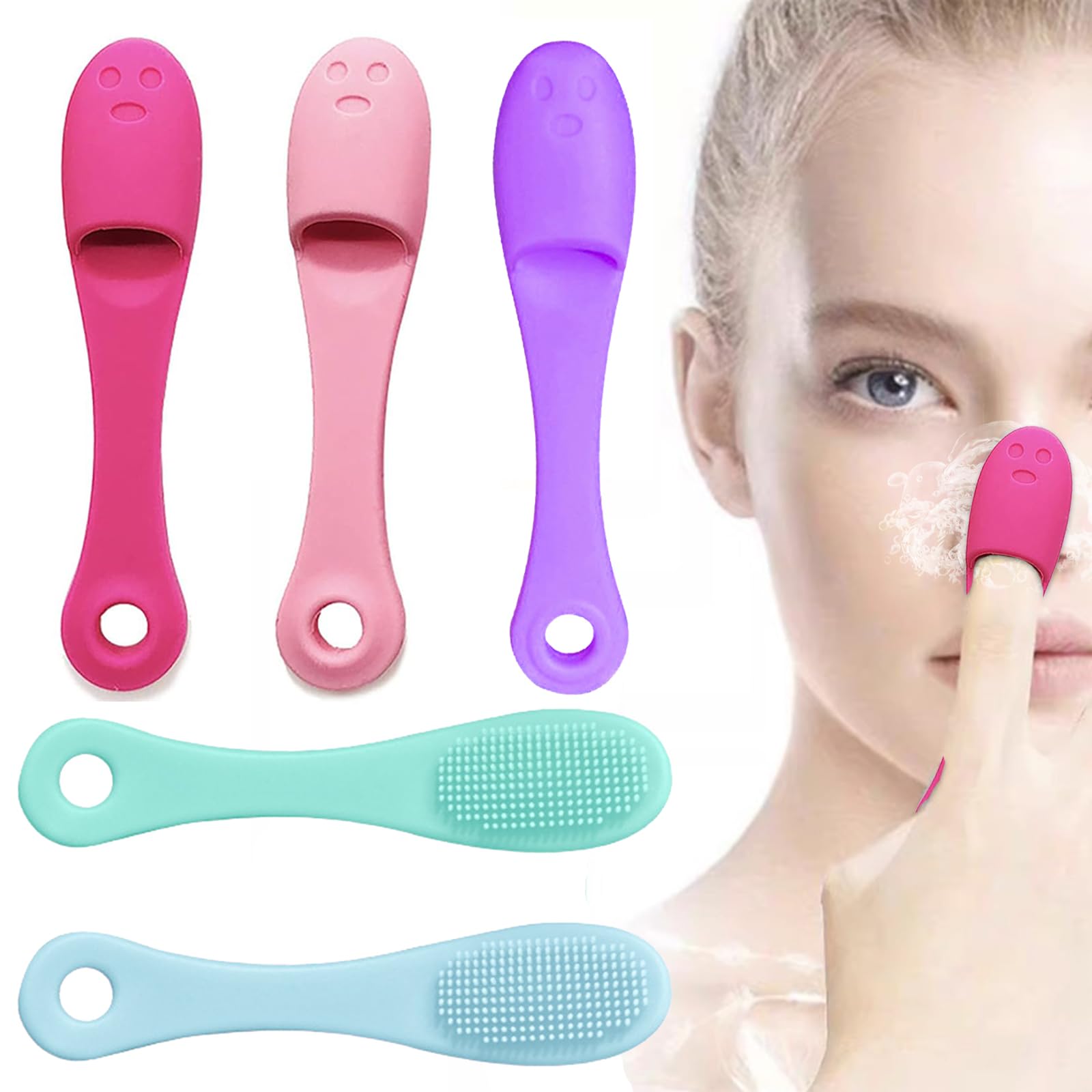 5 Pcs Mini Exfoliating Brush Set - 2 Pcs Silicone Facial Cleansing Brush and 3 Pcs Lip Scrub Brush