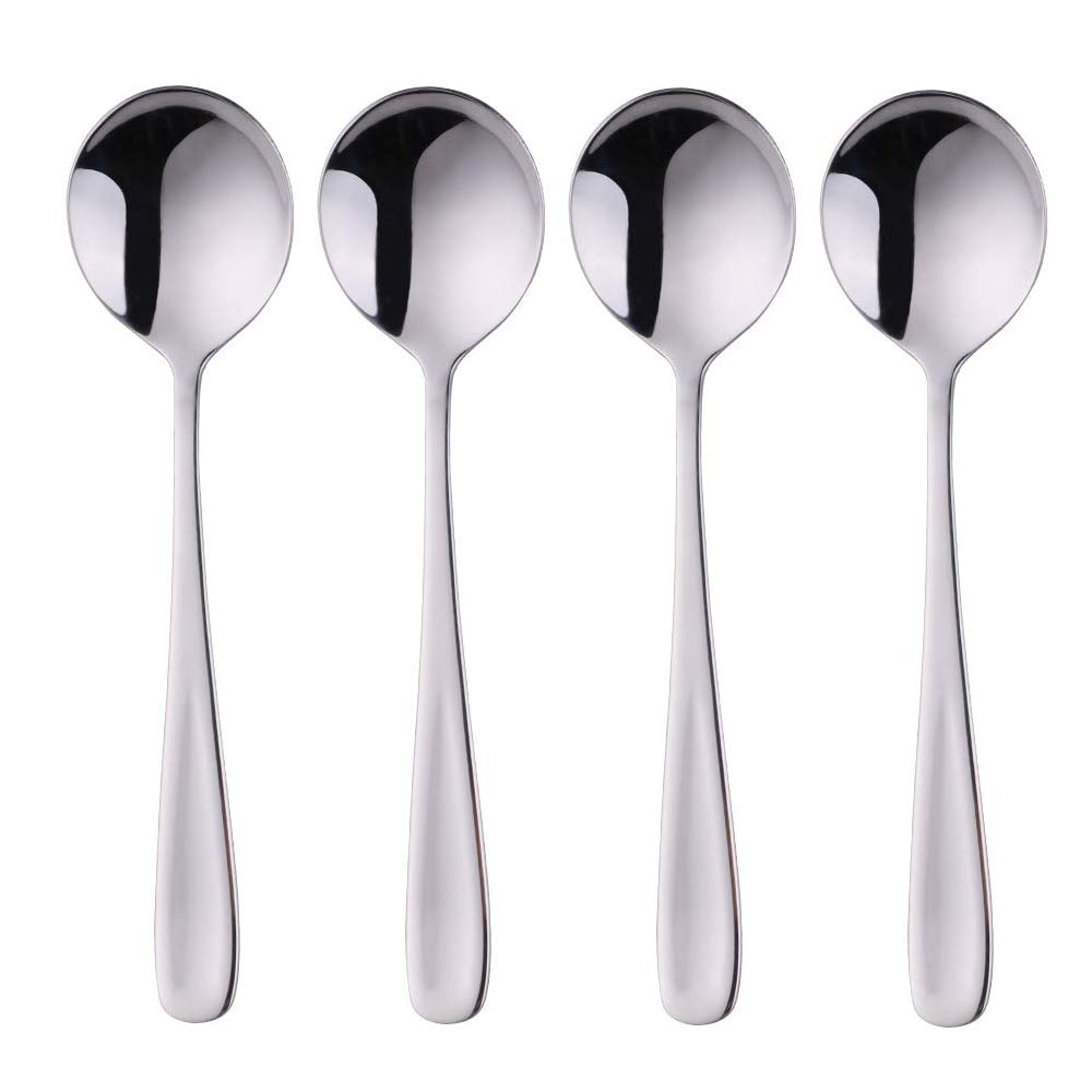 - ✔【Proper Weight】Made of premium stainless steel, this material makes great contribution to the rust-proof, luster of our spoons, which makes our soup spoons durable and shiny. Heavier weight makes it sufficient strength feeling in hands and won't bent