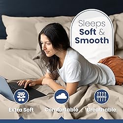 100% Cotton 4-PIECE SHEET SET: If you’re looking for bedding sheets & pillowcases full of cozy softness, the queen bed sheets cotton fabric makes it an easy choice. This set includes 1 flat sheet (94”x104”), 1 fitted sheet (60”x80”) and 2 pillowcases (20”x30”). HIGH-QUALITY COTTON: The long fibers of the premium cotton fabric give these cotton sheets a silky softness. This 400 thread count cotton sheet set is wrinkle- and fade-resistant so you can spend less time worrying and more time enjoying. UNMATCHED COMFORT: These sateen sheets are silky, dreamy, and unlike any other. The smooth fabric is gentle on skin. Durable cotton brings the best of both worlds: comfort and breathability. These ivory sheets for queen size bed are for year-round use. AFFORDABLE LUXURY: These queen cotton sheets bring a sense of luxury to every bedroom. These 100 percent cotton sheets drape effortlessly on your bed. Need cotton queen sheet set that’s Certified Oeko-Tex Standard 100? Oeko-Tex sheets mean better sleep. EASY-CARE: These cotton bed sheets are as easy to take care of as they are to use. To keep your sheets fresh, wash cold and dry on low. Get the most out of your bed sheets set. These queen size cotton sheets are designed to last.