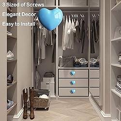 Ceramic Packing Included: 6 packs ceramic cabinet knobs. Each heart ceramic cabinet knob comes with 3 different sizes of screws. 6 packs dresser door pull handles includes 18 screws for DIY dresser knobs installation. (Screws size: 0.87 inch, 0.98 inch, 1.18 inch) Special Heart Shape Design: These blue ceramic cabinet knobs are designed in beautiful heart shape. It is very cute and beautiful to decorate kids’ room, drawers, dresser, closet, cupboard or kitchen furniture. Durable Material: Made of good quality ceramic with surface glazed process make these ceramic heart dresser knobs are durable and will not come apart easily and friendly to your hand. Easy to Install on Furniture: You can just use your hands to install these heart ceramic dresser pull knobs on your furniture with the different screws for ceramic drawer knobs. Very cute but easy to install cabinet door knobs. Satisfied warranty: If you have any questions with these ceramic heart shape door handles knobs for closets, such as missing blue heart ceramic cabinet knobs or accessories for the blue ceramic drawer knobs, please feel free to contact us, we can provide refund or resend you a new set of decorative blue ceramic drawer pulls.