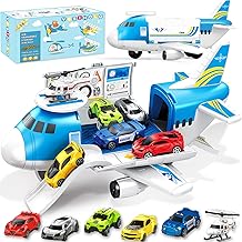 - Conjunto de Juguetes de Coches 5 en 1: Este juego incluye un gran camión transportador y cuatro vehículos pequeños: un mini avión, un pequeño taxi, un pequeño autobús y un autobús mediano. Los niños pequeños de 1 a 3 años disfrutarán jugando a la simulación de transporte en la ciudad, desarrollando su creatividad y habilidades de resolución de problemas mientras juegan dentro o fuera de casa.