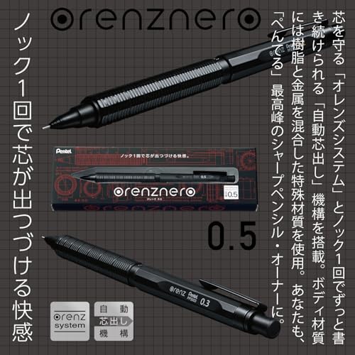 Lápiz mecánico Pentel Orenznero 0.5mm con función de alimentación automática de punta