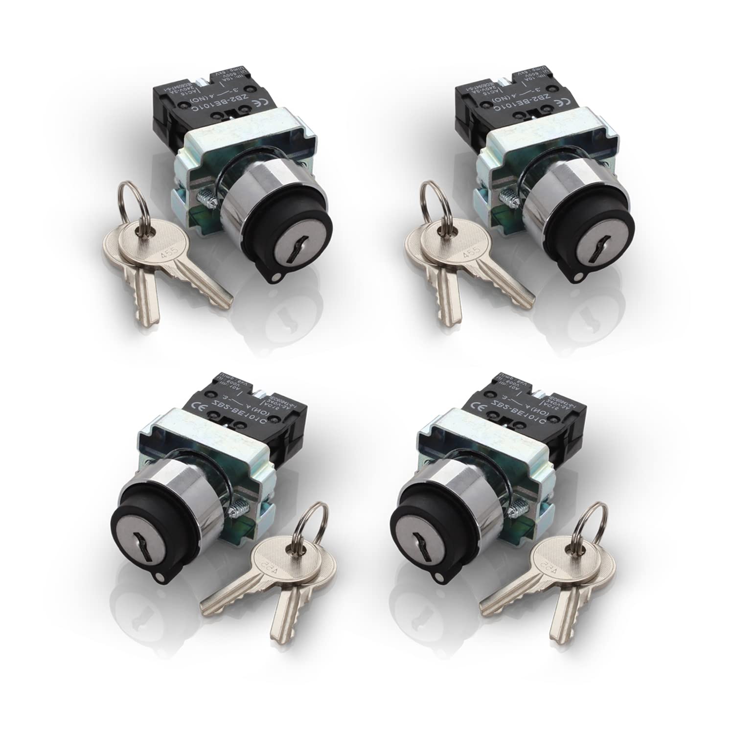 Rotary Switch - 2-Position Selector Switch Maintained - 22mm Mounting Hole - Electric NO NC Latching - 220VAC Voltage and 10A Contact Current - (4 Pack)