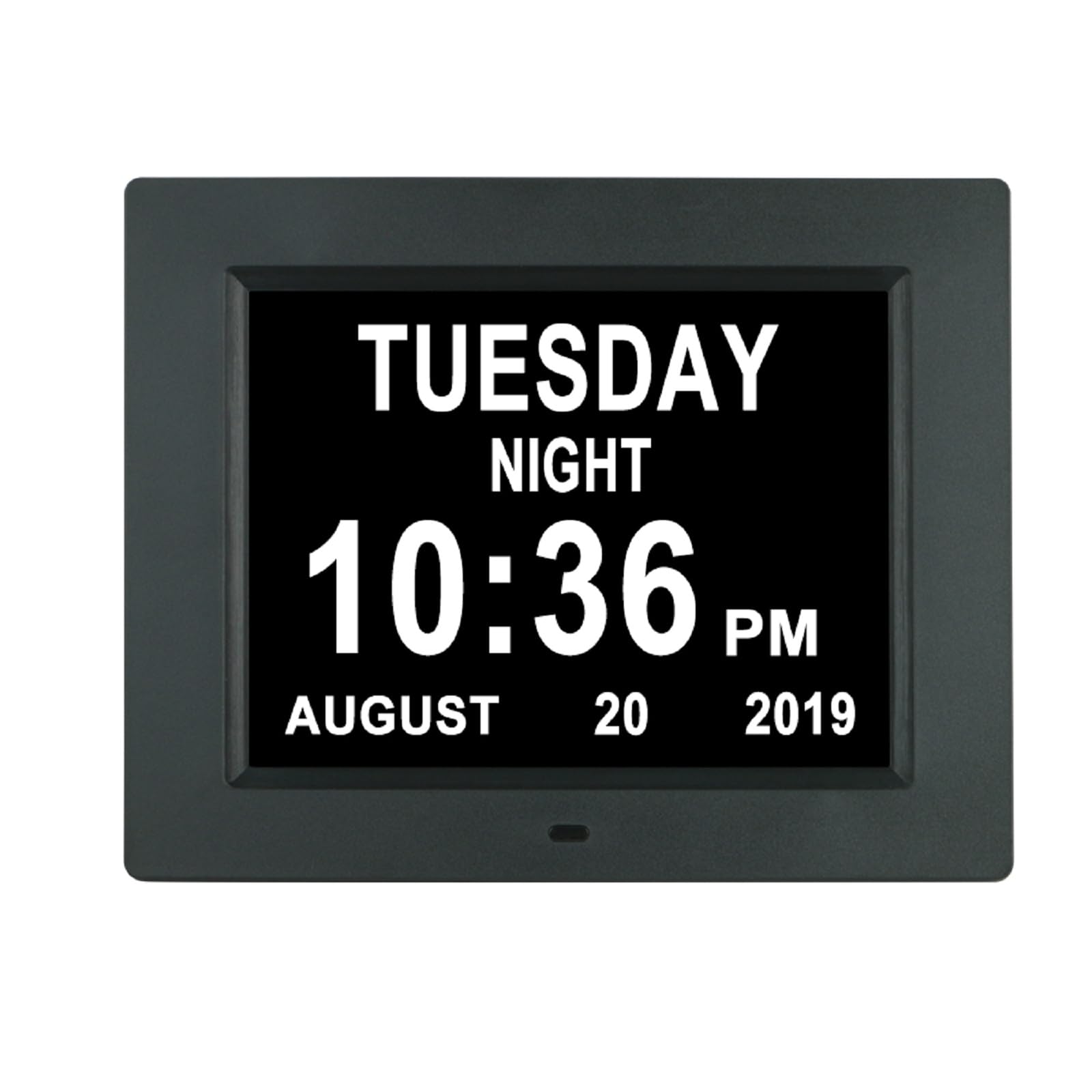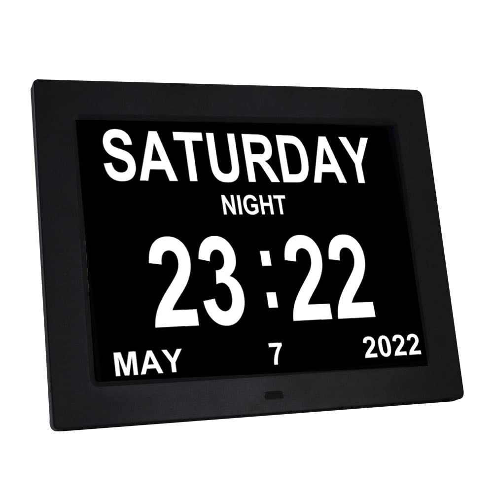 Aowasi 7 Inch Dementia Clock for Seniors Impaired Vision Alzheimers Digital Calendar Day Clock with 12 Alarm Options, Non-Abbreviated Day & Month
