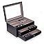 Bey-Berk Luxury Designer 18 Eyeglass and Sunglass Storage Box in Real Wood, Extra Large Slots, Soft Velour Lining, Dresser Organizer