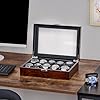 BEWISHOME Watch Box -10 Slot Wooden Watch Cases for Men Watch Storage with Real Glass Top, Mens Watch Organizer Holder with Removable Pillows, Smooth PU Leather Interior, Brown SSH10Y