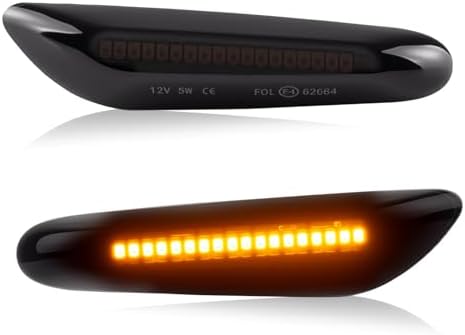 D-Lumina LED Side Marker Turn Signal Lights Assembly for BMW E90 E91 E92 E93 E46 E53 E60 E61 X3 E83 X1 E84 E81 E82 E87 E88 Side Marker Light, Smoked Lens Amber Side Marker Lamp, Pack of 2
