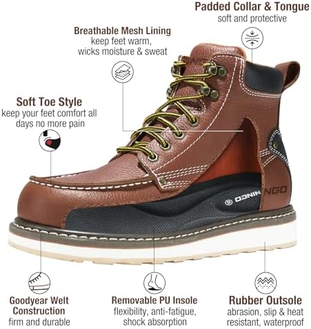 HISEA NINGO Work Boots for Men Steel/Soft Toe Boots, 6” Water Resistant Slip Resistant Industrial & Construction Work Boots, Composite Toe Working Boots