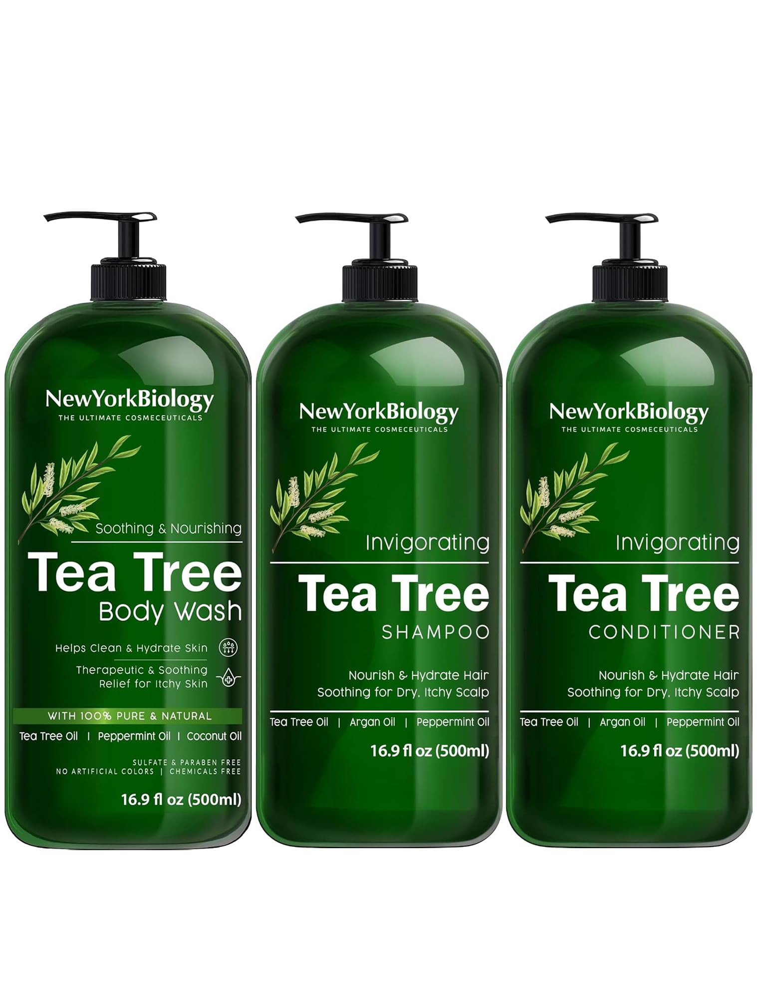 New York Biology Tea Tree Mint Body Wash for Men and Women - Moisturizing Body Wash Helps Soothe the Skin - Refreshing and Hydrating Cleanser for Body and Feet - 16.9 Fl Oz