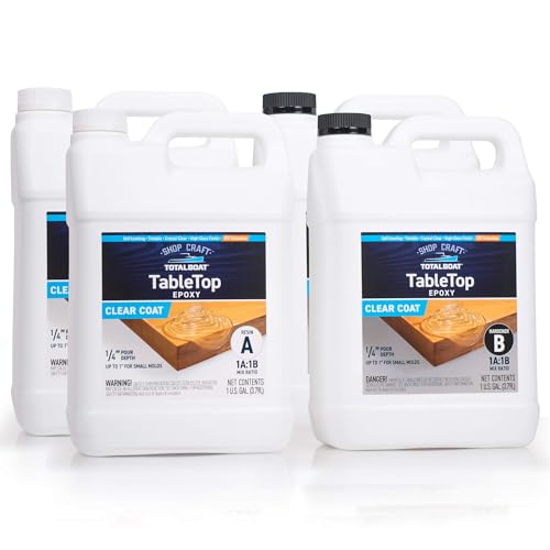 TotalBoat Table Top Epoxy Resin Kit - 4 Gallon Crystal Clear Formula with High Gloss & UV-Resistance - Easy 1:1 Ratio for DIY Bar and Counter Coating, Woodworking, and Original Art Casting