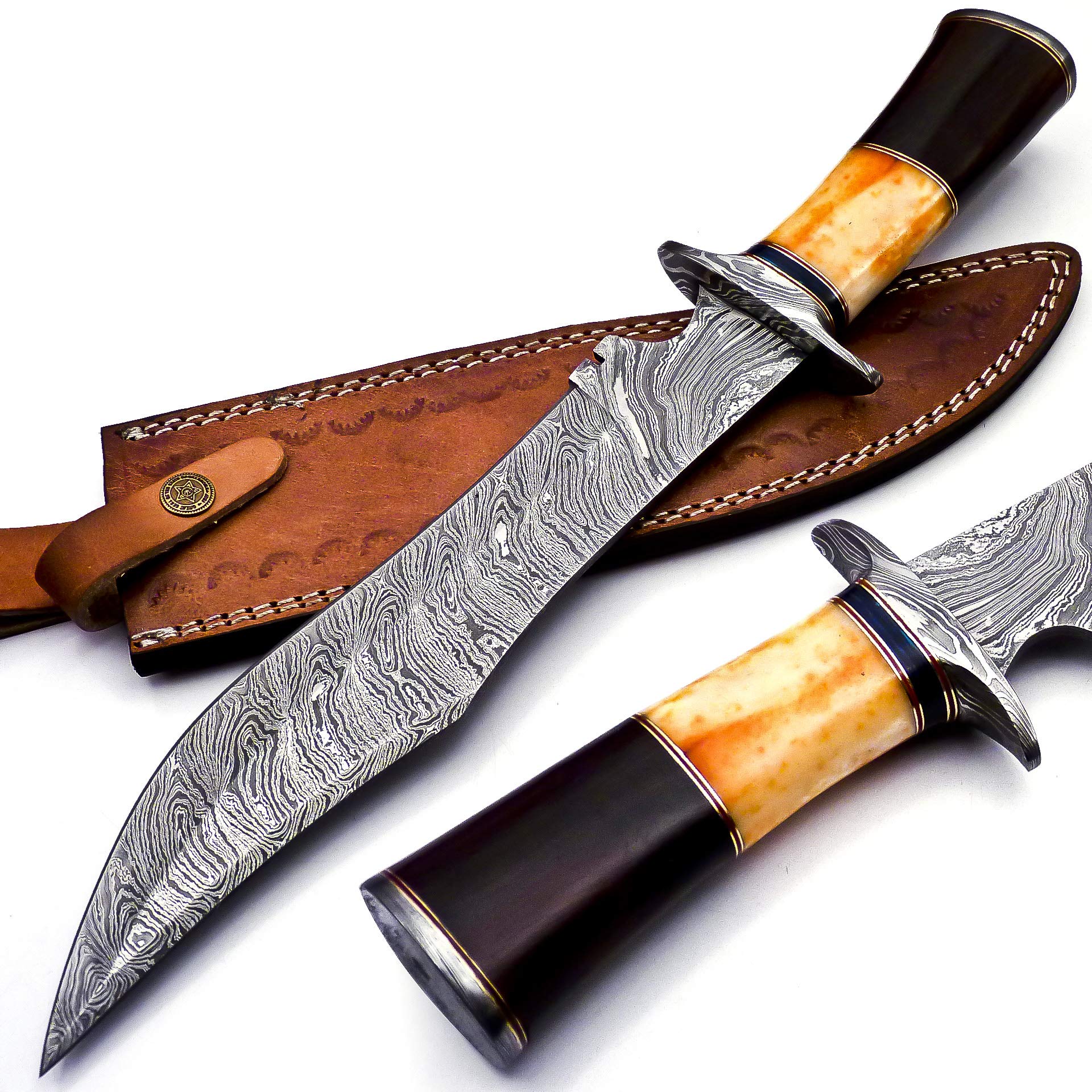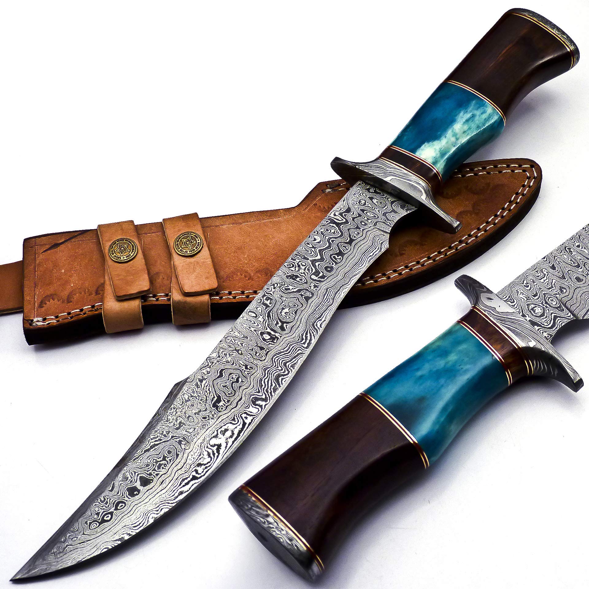- HIGH GRADE DAMASCUS: steel used for blade consists of layers of low carbon and high carbon mixture welded, forged and hammered several times to obtain up to 256 layers. The hardness of these blades is up to 60 hrc on the rockwell scale providing sharp edges that is designed for rough and tough use.