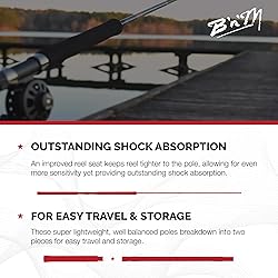 - A remake of B n M's popular series from early 1980’s, the B n M Stick is a 13 ft, 2pc rod that provides a super-stiff action that many crappie fishermen desire since the advent of real-time electronics. It is complete with stainless steel guides that are very smooth and durable. It is also equipped with a 21 inch Portuguese cork handle with reinforced reel seat that rests easily under your forearm. This heavy action jig pole pairs with 4-12 lb test line. The Super Stick weighs just 8 oz!
