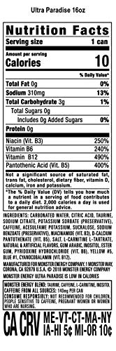Refreshing taste: Monster Ultra paradise delivers invigorating Island flavors, with kiwi, lime and a hint of cucumber, and just 150mgs of caffeine. Kick back and Enjoy