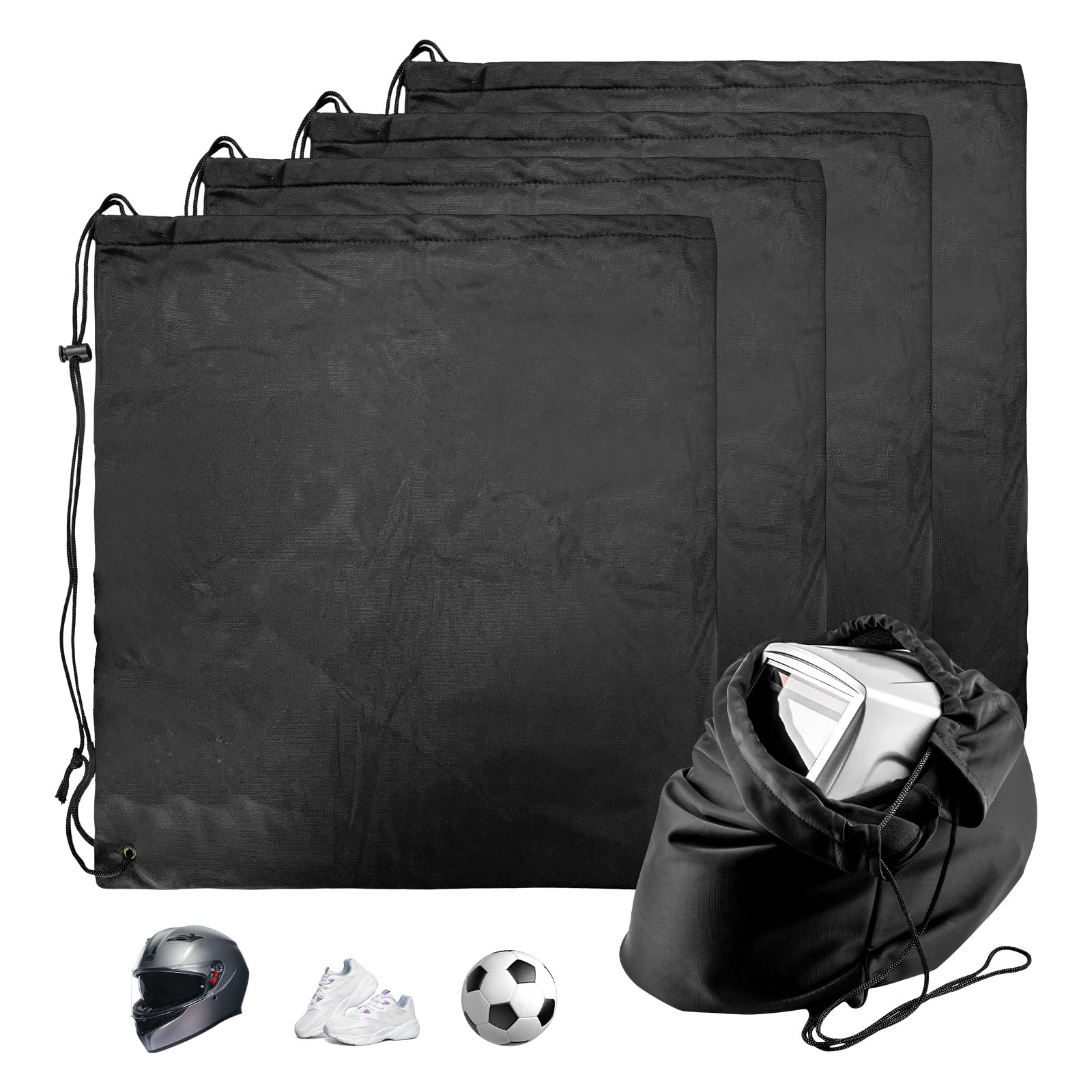 - Drawstrings cinch bag's top and double as shoulder straps