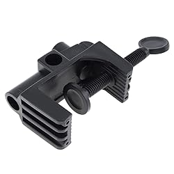 - Features: Main Material: Plastic Product Color: Black Application: Mic Stand / Desk Lamp / Desktop Magnifier Bracket / Balloon Arch Metal Clips / Universal Bracket Features: Plastic, very solid, simple clamps accommodate all swing arm lights with stems. The hole diameter is 11mm. The clamp can easy to clip on the workbench, table, headboard or other objects up to 5.2 cm thick and the nut can be easily adjusted to hold the lamp in place. The clamps bracket may be adjusted to fit either horizontal deck rails or Vertical posts & banisters less than 52mm in thickness. Suitable for microphone cantilever bracket and other audio accessories. Item:Bracket Clamp Hole Diameter: 11mm Clamp Range: 1- 52mm Place of Application: Broadcast Microphone Desk Lamp Product Weight : 2.47 Ounces Product Dimensions (L*W*H) : 4.72*1.77*1.38 Inches Package Include: 1 x Bracket Clamp