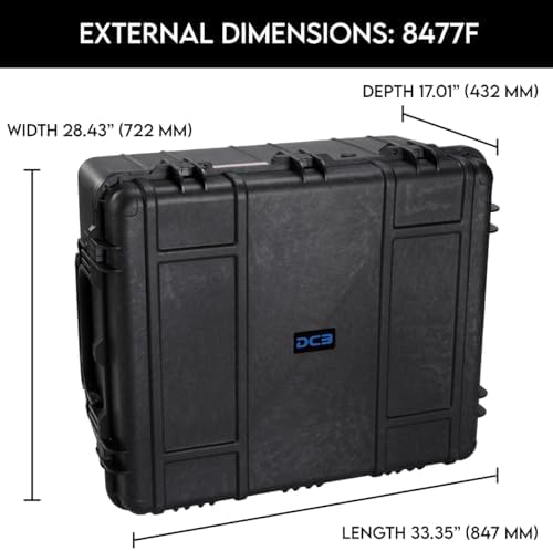 DCB Cases - Element 8477F | 33 x 28 x 17 Ext Dim | Waterproof | Pluck Foam Insert | Telescoping Handle | Reinforced Handles | Resin-Reinforced Injection Molded Plastic | 7 Latch Lid Close | Wheels