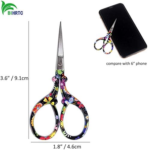 BIHRTC 3.6 Inch Embroidery Scissors - Sharp Stainless Steel Pointed Scissors for Cross Stitch, Sewing, Craft & DIY - Black Flower Design