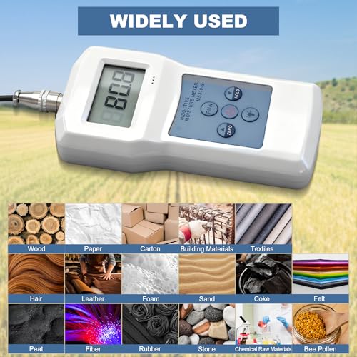 - Moisture Measurement – Inductive pinless moisture meter is portable and compact for measuring almost everything moisture instantly without damaging the sample. Even outside the plastic bag, it does not affect the measurement results.