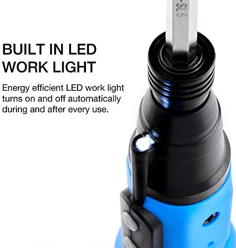 • [CARACTERÍSTICAS]: Una ventaja adicional de este destornillador eléctrico es una luz LED montada debajo del manguito para una línea de visión clara de su tornillo o tuerca en los entornos más oscuros con la opción de evitar el fastidio del giro manual y la imprecisión de inserción.