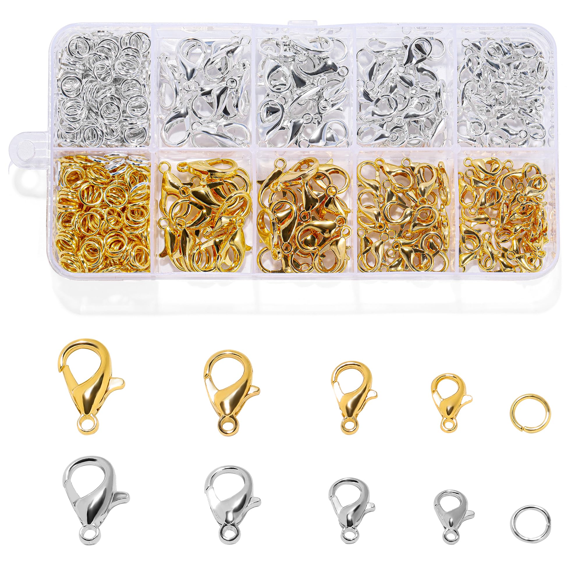 sprookber 100pcs Metal Lobster Claw Clasp with Key Ring, Keychain Rings for Crafts, Key Jewelry DIY Crafts, Lanyard Clips snap Hook, Swivel Clasps Clip