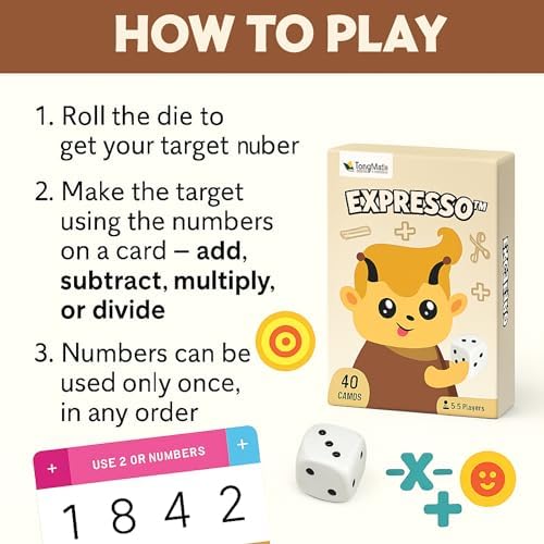 Expresso – Math Card Game for Ages 6+ – Fast-Paced Equation Building for Quick Thinkers – Grades 2-5 Classroom & Home Fun