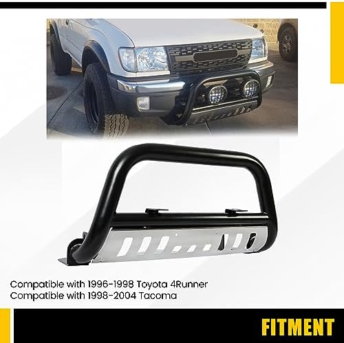 KUAFU 3'' Bull Bar Compatible with 1996-1998 Toyota 4Runner 1998-2004 Tacoma W/Skid Plate Brush Guard Front Bumper Grill Grille Guard Protector Brush Push Bar Black Steel Power Coated