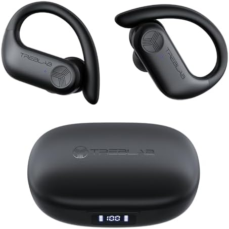 TREBLAB X3 Pro - Workout True Wireless Earbuds, Comfortable Earhooks, Bluetooth 5.3, Noise Isolation, 145H Playtime, IPX5 Waterproof, 2 Mics for Calls, Sport Bluetooth Earbuds (Renewed)