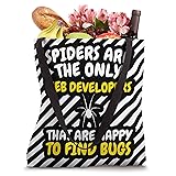Spiders are the only web developers - funny programmer gift striped / with black and white stripes This Funny Design With a Humorous Saying Will Make a Great Gift for a Spider Lover 16” x 16” bag with two 14” long and 1” wide black cotton webbing strap handles. Made of a lightweight, spun polyester canvas-like fabric. All seams and stress points are double-stitched for durability, and the reinforced bottom flattens to fit more items and hold larger objects. Spot clean/dry clean only.