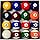 - Grade A deluxe billiard pool table balls made of polyester resin.