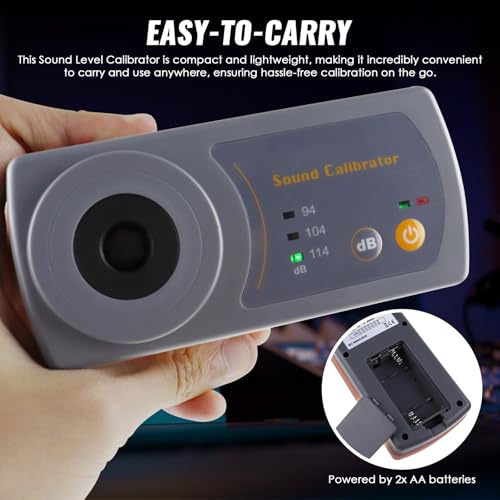 - 【Portable】The sound meter calibrator is powered by 2 AA batteries, making it portable. It can be carried in a pocket, handbag, or even concealed in a sleeve