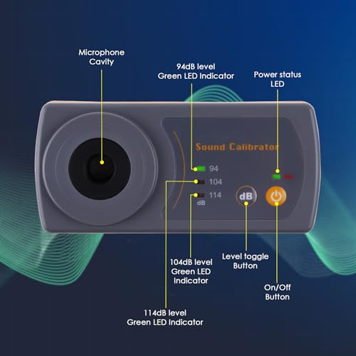 Sound Level Meter Calibrator, Precise Decibel Meter Calibrator with 3 Calibration Level 114dB & 94dB & 104dB, Professional Sound Pressure Level (SPL) Calibrator for Sound Level Meters