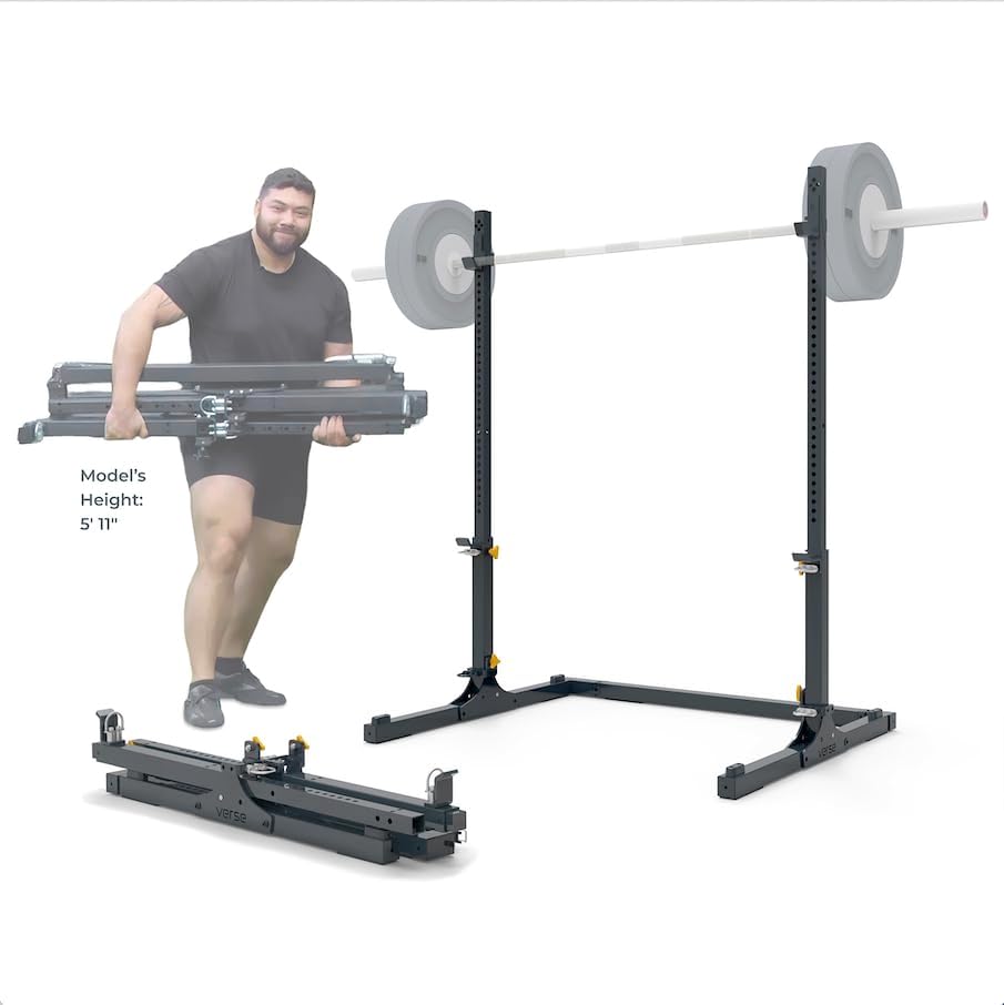 - 【Height Adjustable】: Adjustable Barbell Rack that suitable for a variety of height requirement. Bracket Height range of 50 Inch -57 inch, Adjust the spotters to fit your height need.