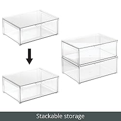 mDesign Plastic Stackable Kitchen Storage Organizer Bin Containers with Front Pull Drawer for Cabinet, Pantry, Fridge, Freezer, Shelf, Refrigerator Organization - Lumiere Collection - Clear