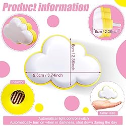 - 2 Pieces LED cloud night light plug-in lamp night warm sensor cloud-shaped wall night lights for adults bedroom Automatic switch: These cloud night lights contain built-in light sensor, automatic turn on or off. When you go to the toilet or go to the kitchen to drink some water, you don't need to open the main light, these cloud night lights can provide you with enough brightness in your night movement without disturbing people's sleep. Plug in: You just need to plug LED cloud night lights to a socket to make them work, eliminating the need of changing the batteries frequently. The light is warm and soft and will not cause discomfort to your eyes. Specifications: Plug type: US plug Material: ABS, LED Dimensions: 9.5 x 6 x 6 cm/ 3.74 x 2.36 x 2.36 inch Light source: LED Wattage: 0.6 watts Color: as the picture shown Package includes: 2 x Cloud night lights Warm notes: Please allow slight deviation due to manual measurement. Please allow slight color difference due to different monitor.