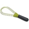 Joseph Joseph Twist Whisk 2-In-1 Collapsible Balloon and Flat Whisk Silicone Coated Steel Wire, Gray/Green