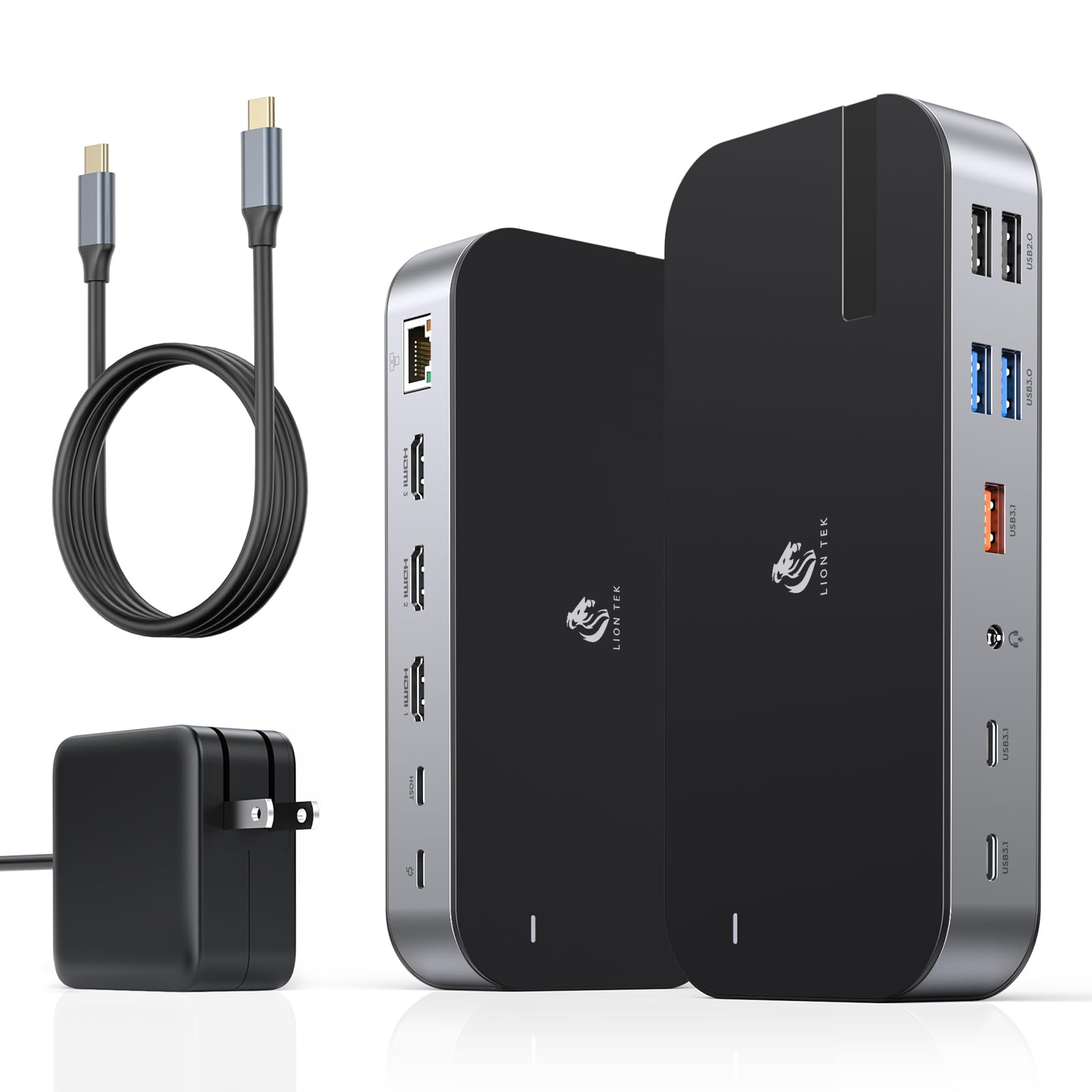 - 【9 In 1 USB C Hub】LIONWEI monitor hub for laptop perfectly combines the function of the usb c hub and dual monitor docking station, compares with the traditional bulky docking station. 9-IN-1 docking station for laptop powerfully meets your multiple expansion needs: two 4K HDMI video outputs, a 100w PD charging port, two USB 3.0 Type-C port, a USB 2.0 ports, an Ethernet port, and SD/TF card reader slots