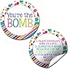 - 2 inch circle labels are perfect for hot chocolate bomb gift packaging. You’ll get 20 sets of 2 stickers each so there’s plenty to go around. Stick them on your goodie bags – 1 decorative sticker on the front of the package, 1 instructional sticker on the back!
