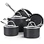 • Induction Incompatible: The hard anodized pot set is suitable for gas, electric, ceramic, and glass cooktops; However, it is not compatible with induction stoves, as the aluminum bottom is not ferromagnetic and cannot be used for induction heating