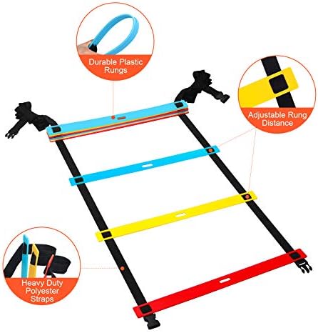 - HIGH QUALITY MATERIAL - Our Agility Ladder is made of high quality PP and PE material, lightweight and durable for training. The Agility Ladder is must-have sports item for athletes to increase acceleration, leg strength, and speed, core skills, balance, rhythm, and body control.
