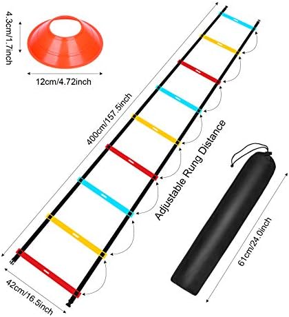 - SPORTS TRAINING SET - The speed training equipment set includes 13 Foot Adjustable Agility Ladder, 10 Disc Cones and Bag. Improve fitness, agility, speed, vertical jump, and explosiveness.