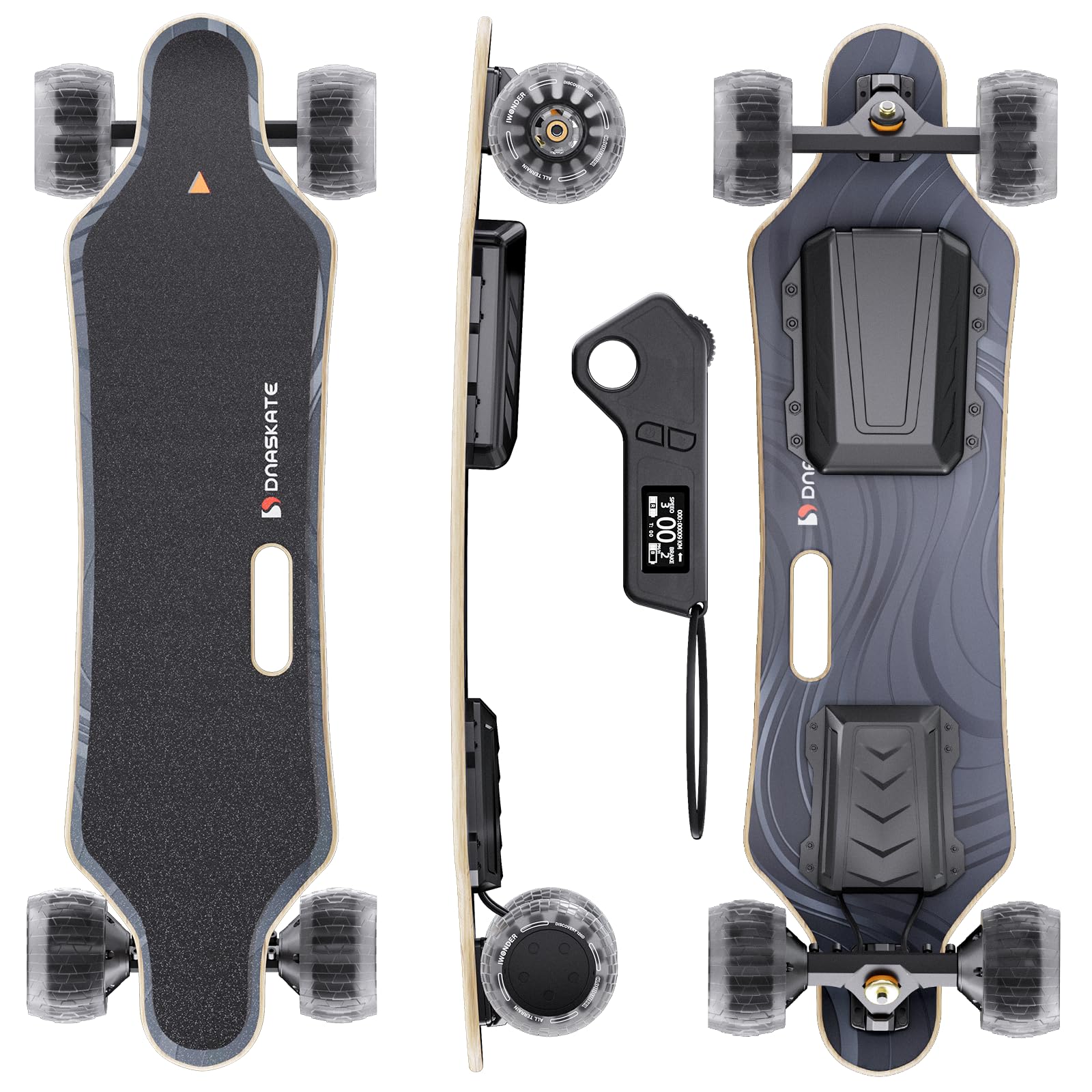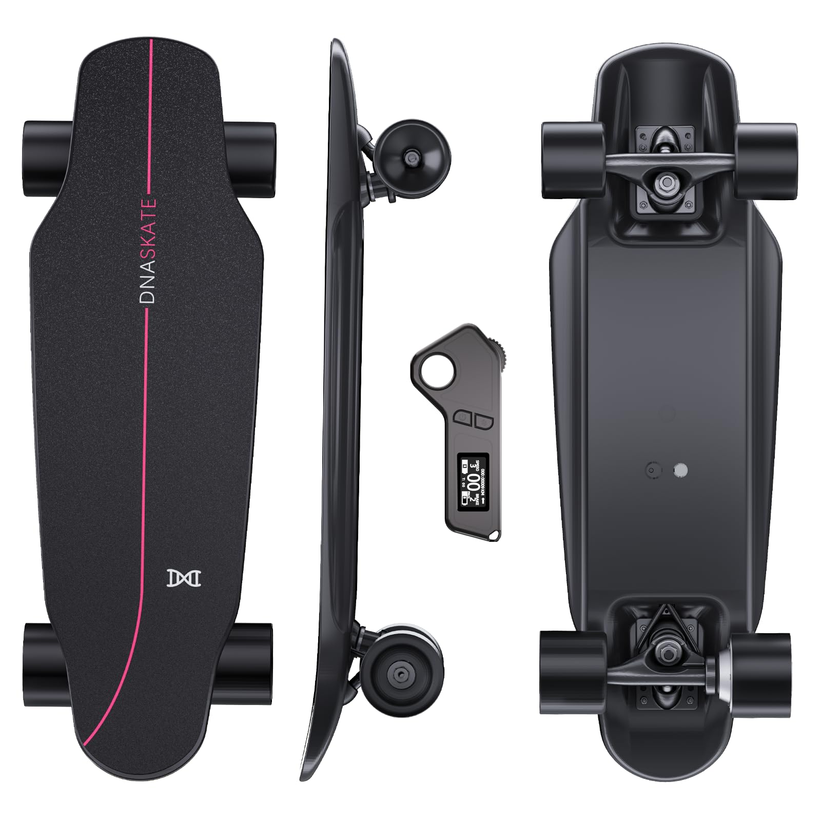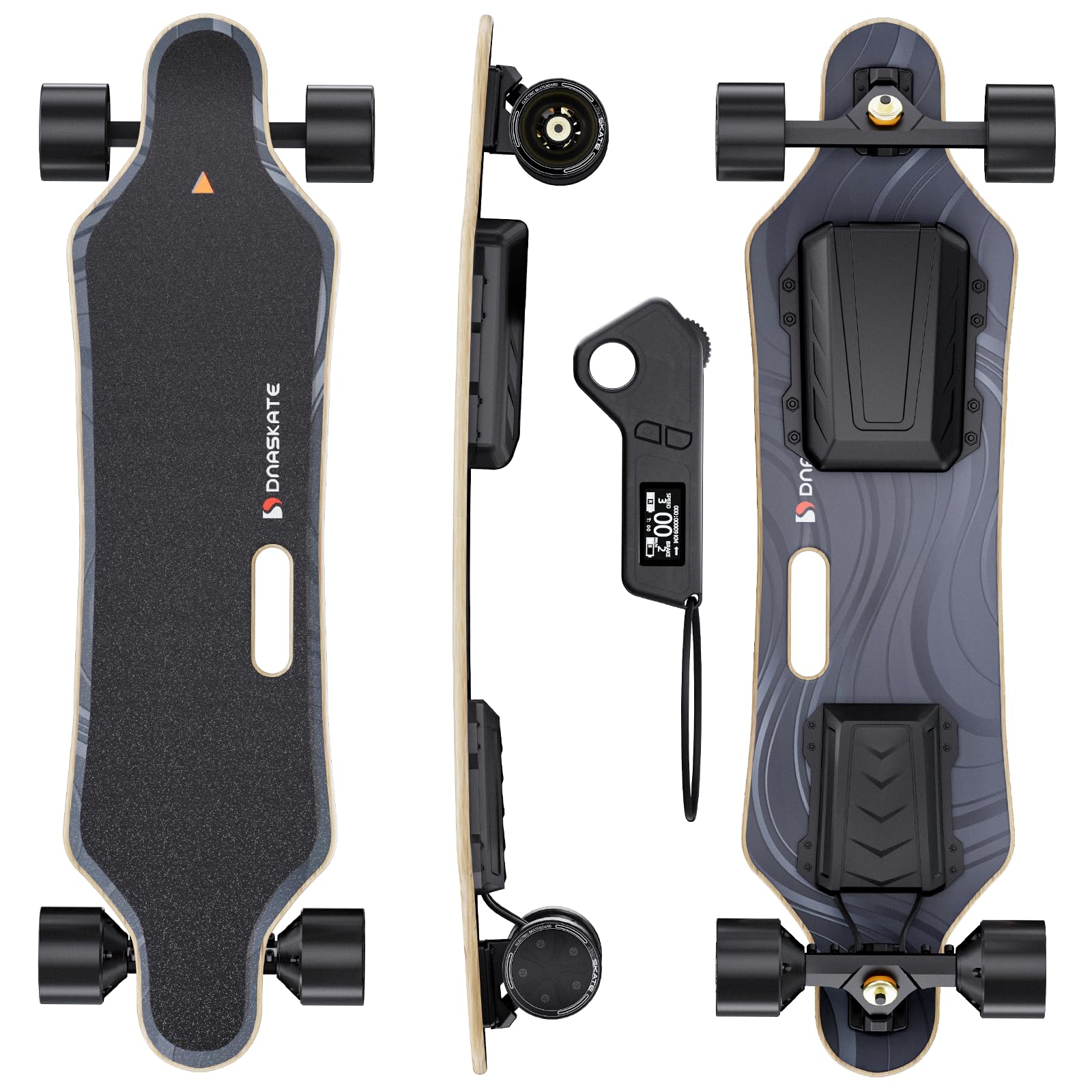 - MULTIFUNCTIONAL REMOTE - Portable electric skateboard with remote, take you to enjoy the scenery anytime, anywhere. Switch freely, accelerate, brake, forward and backward, 3 speed modes .designing for happy time and cool cruising.