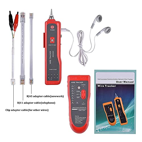 Network Cable Tester, RJ45 RJ11 Multi-Function Wire Tracer and Circuit Tester with Earphone For Cable Collation, Network & Telephone Line Test Specifications: Power Specs: DC, 9V laminated battery (not included) Max operating current: Emitter+-10mA;Receiver+-30mA Signal Transmission Format: Multi-frequency pulse Testable Wires: telephone line, video line, common metal wire and network wire Testable Port: RJ11, RJ45 Signal Output level: 8Vp-p Signal Transmission distance: ≥3 km Features: 1. Easy and convenient to operate. 2. Portable and easy to carry. 3. Low-voltage & energy saving. 4. Sensitive sensor, stable and reliable. 5. With earphones in noisy environments. What's in the box? 1 x Emitter 1 x Receiver 1 x Earphone 1 x RJ11 cable 1 x RJ15 cable 1 x Cable with crocodile clamp 1 x User Manual 1 x Certificate of Conformity If you have any questions, please feel free to contact us!