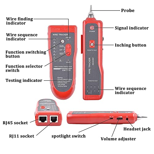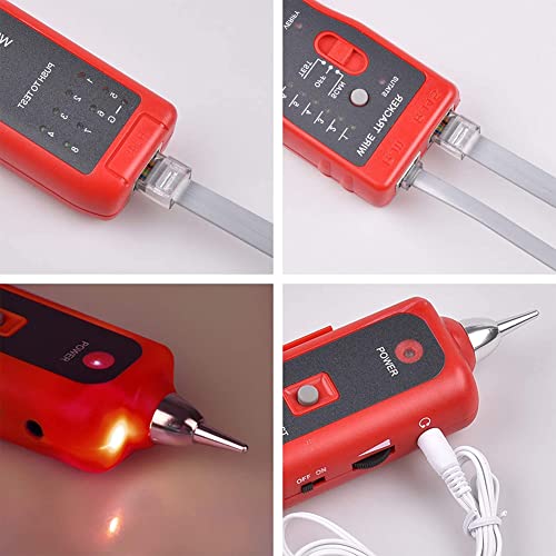 Ubrand Network Cable Tester, RJ45 RJ11 Multi-Function Wire Tracer and Circuit Tester with Earphone for Cable Collation, Network & Telephone Line Test, Red